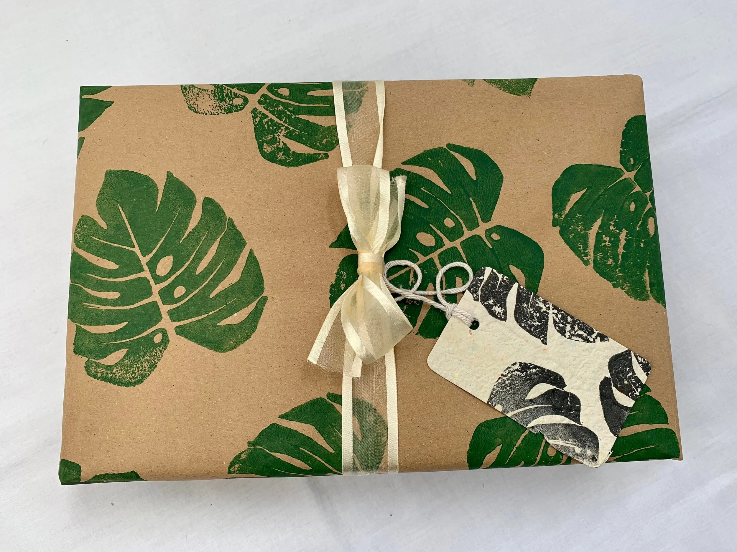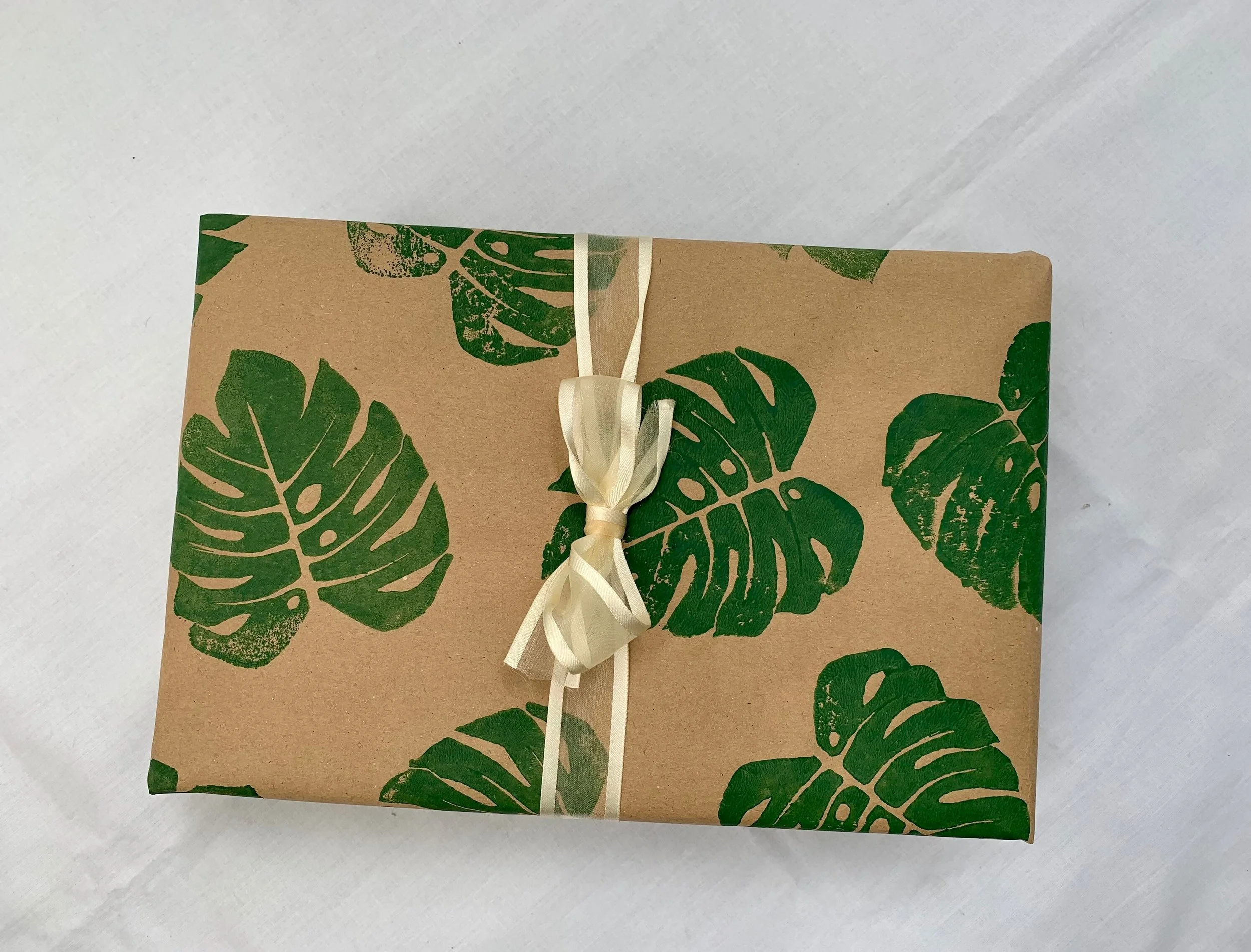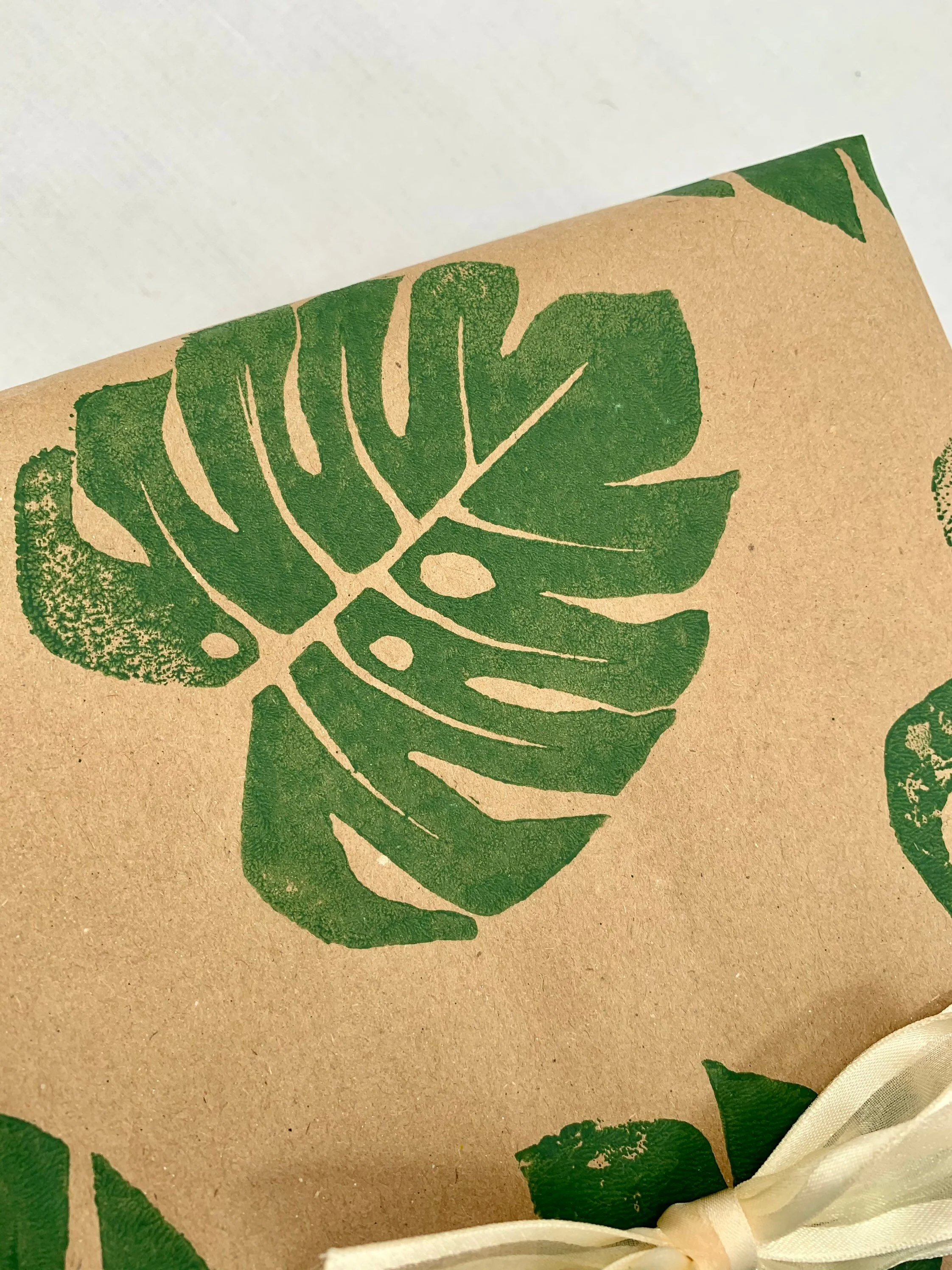 Make you gifts stand out with our handprinted Monstera Leaf gift wrap.
