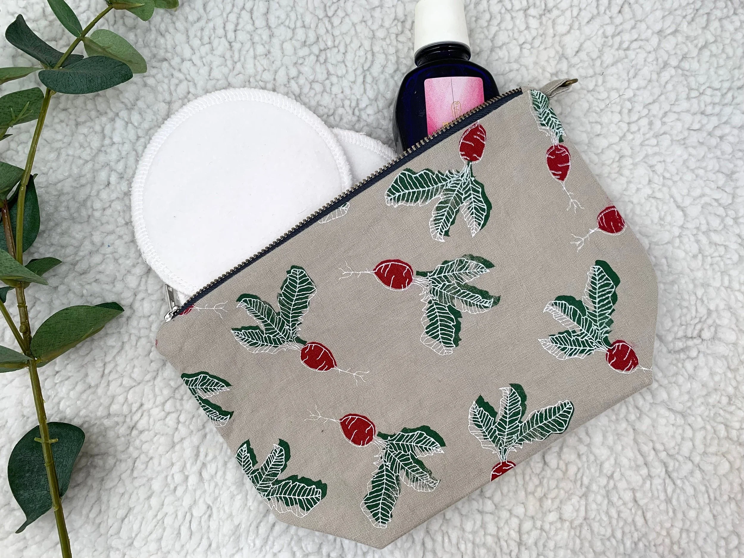 Sewing pattern and tutorial for cosmetic case. Pdf download to print at home
