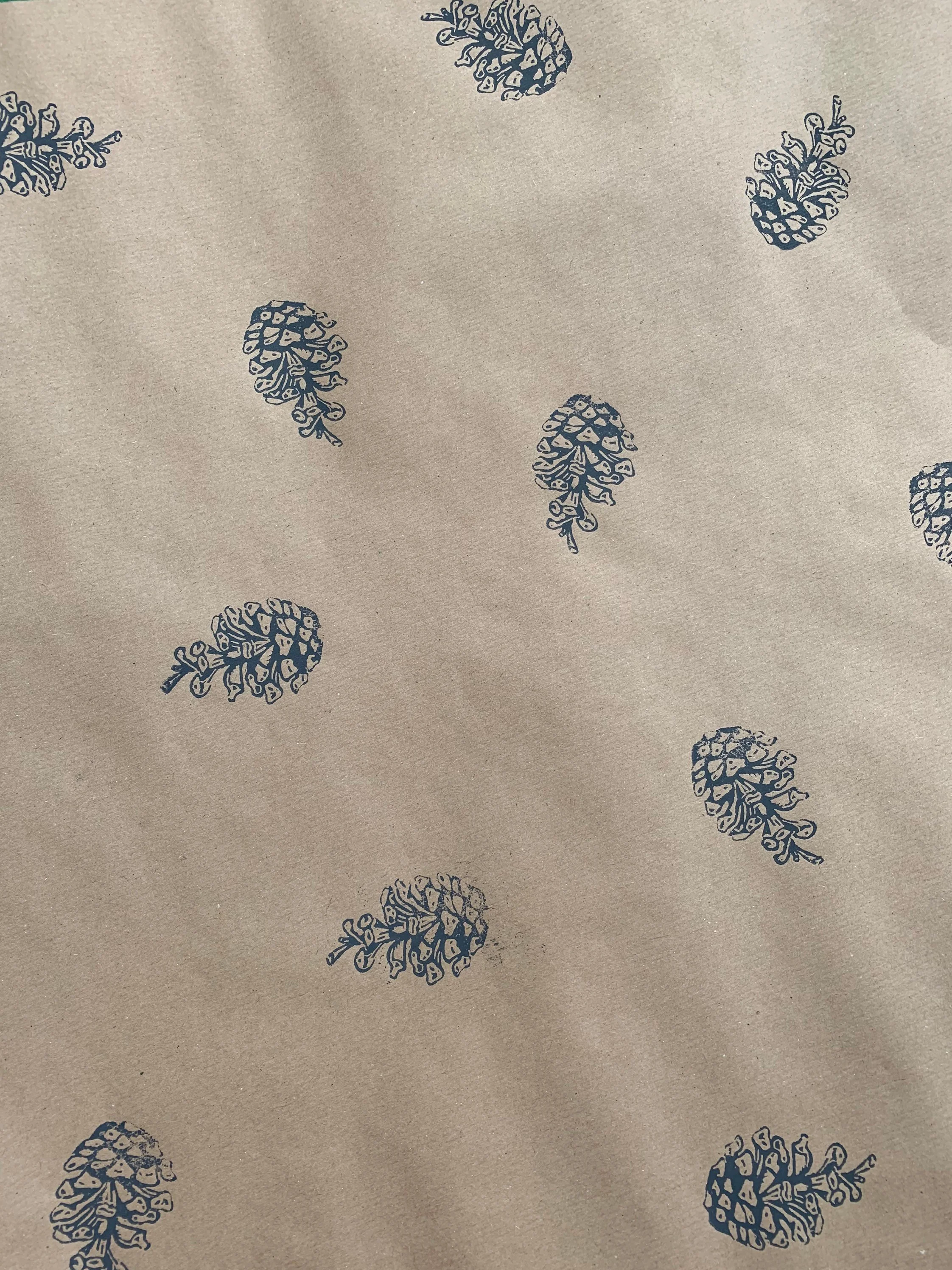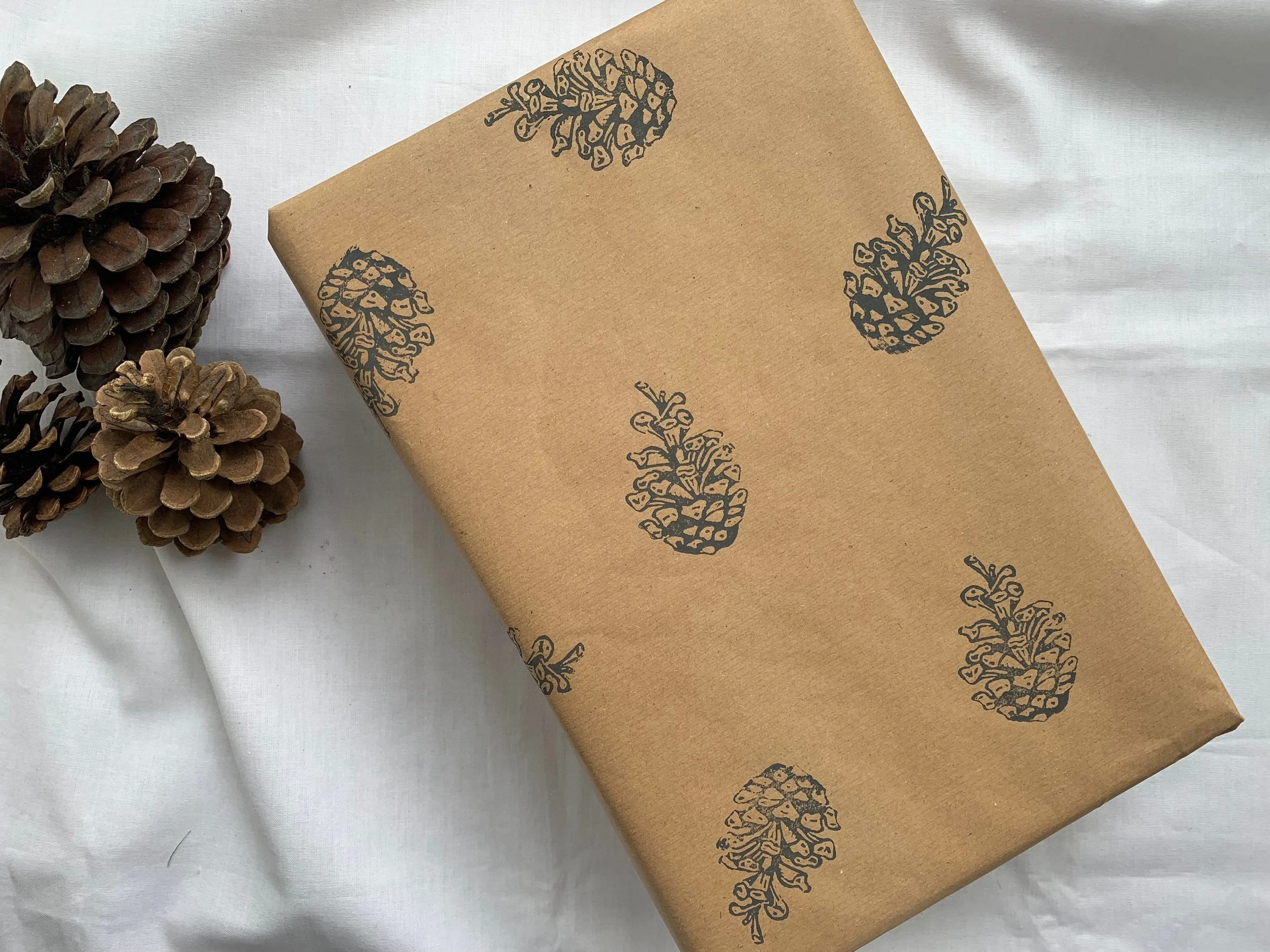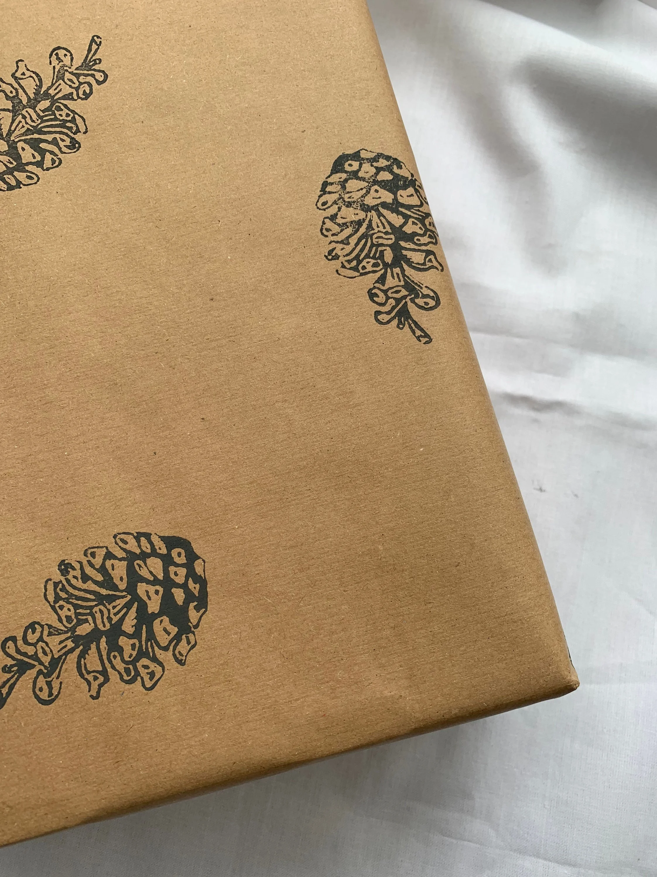 Pine cone gift wrap, handprinted wrapping paper, gift wrap, luxury gift wrap, eco gift wrap