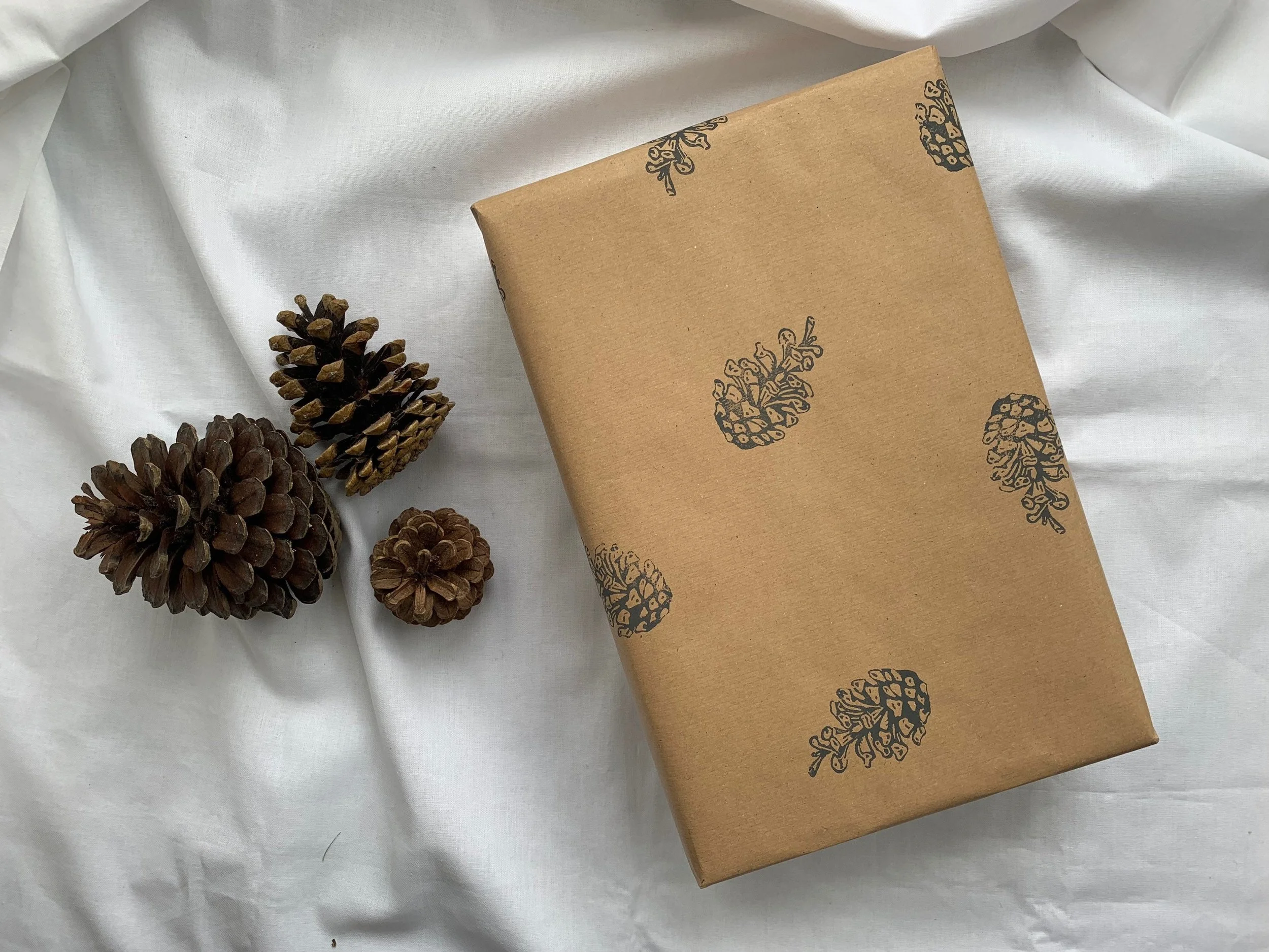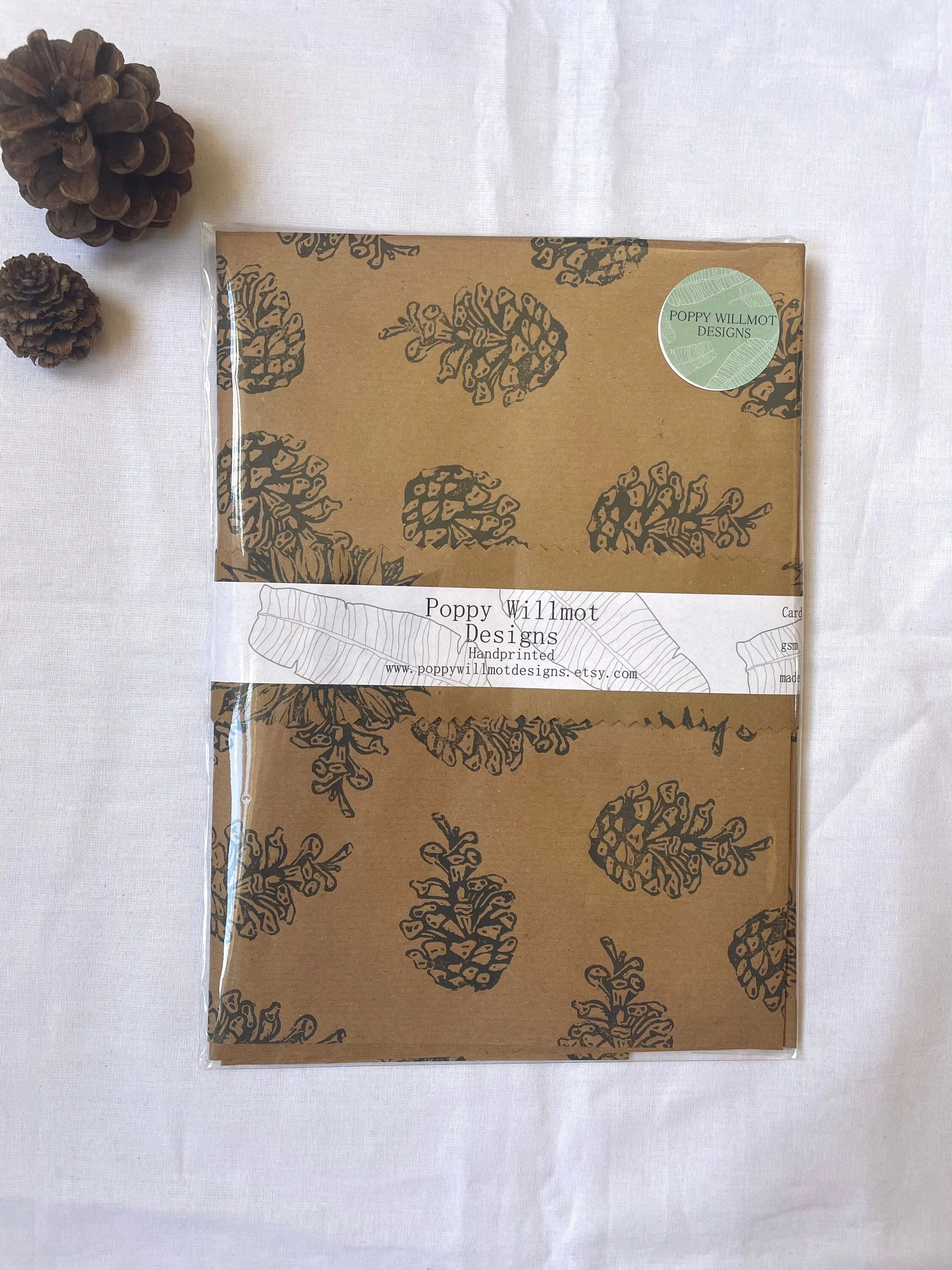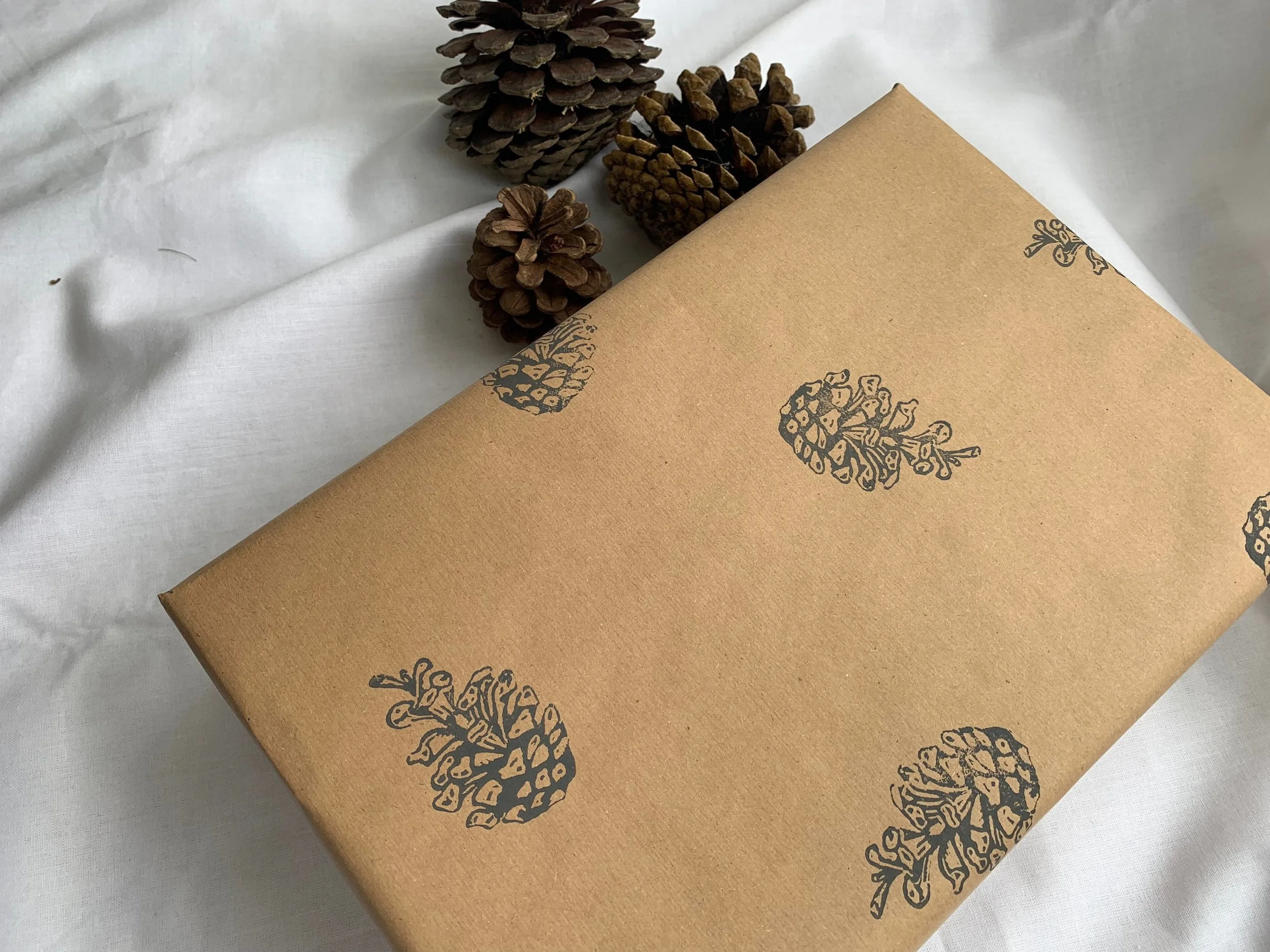 Pine cone gift wrap, handprinted wrapping paper, gift wrap, luxury gift wrap, eco gift wrap