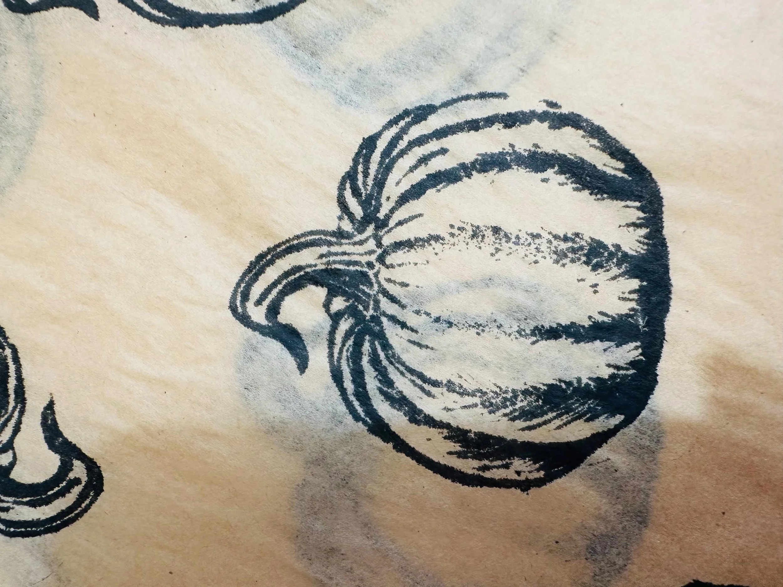 Handprinted with our Pumpkin stamp on a variety of colours.