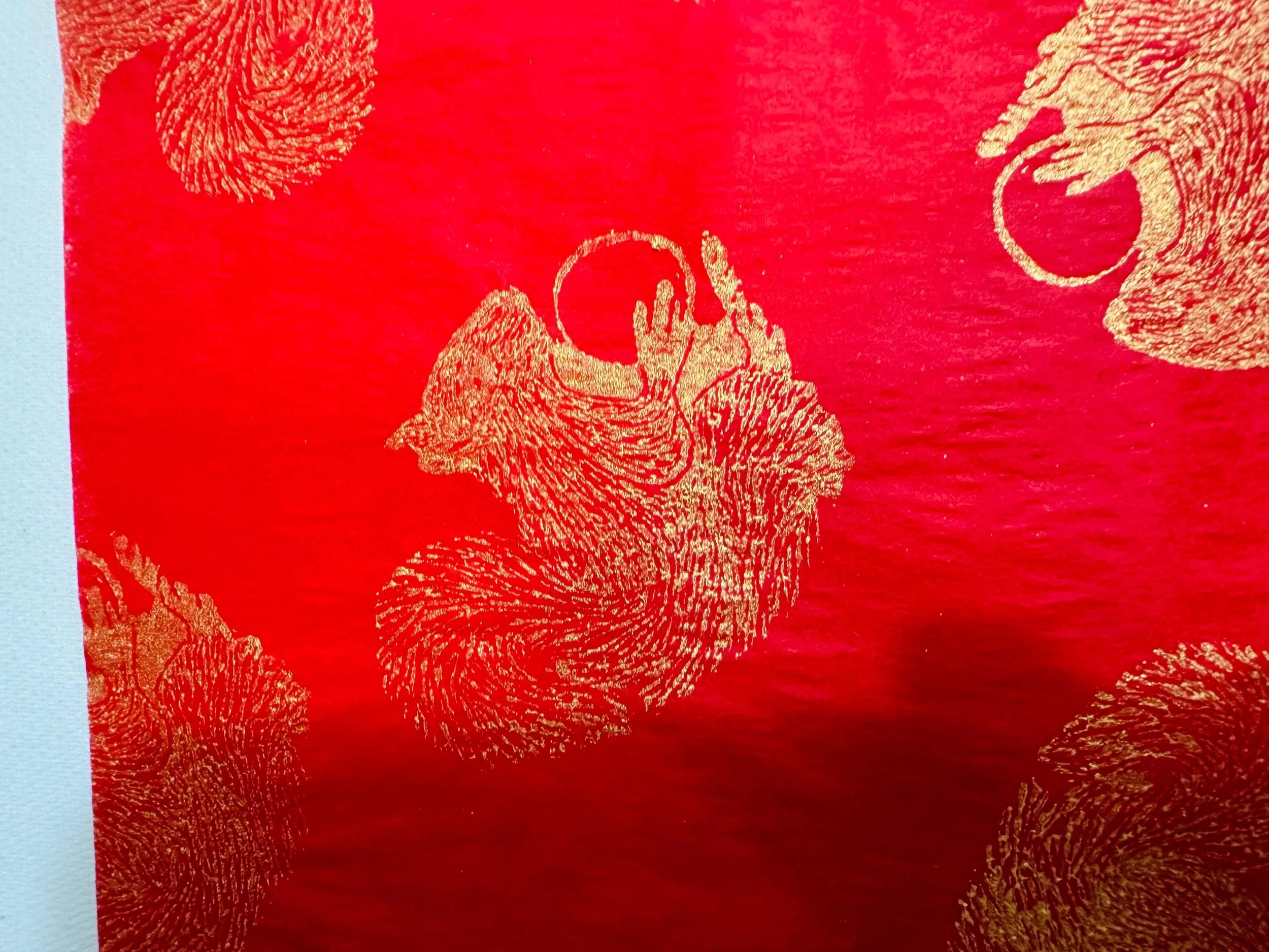 Handprinted with our Squirrel stamp on a variety of colours.