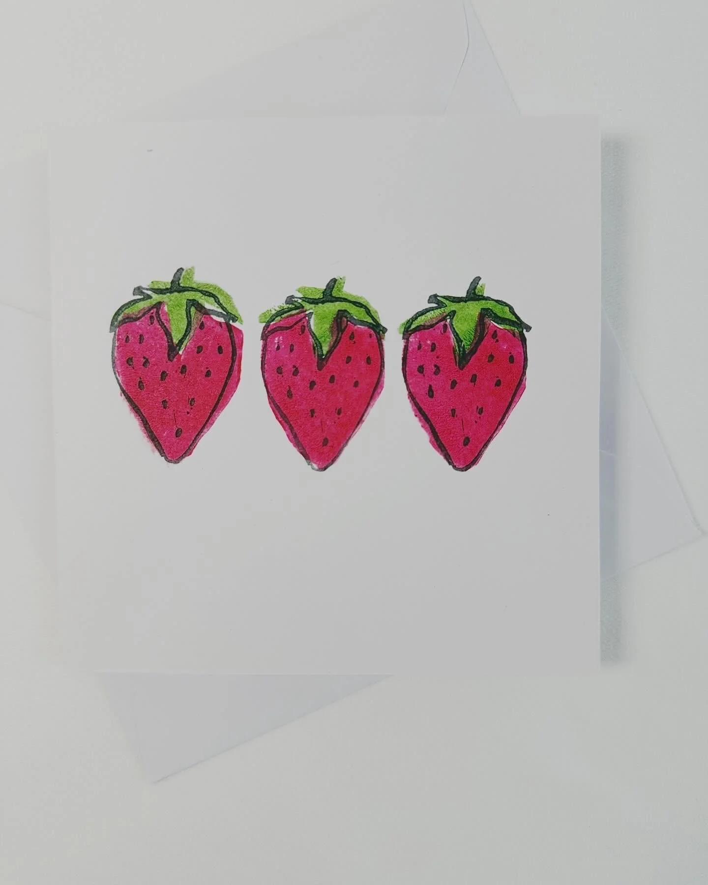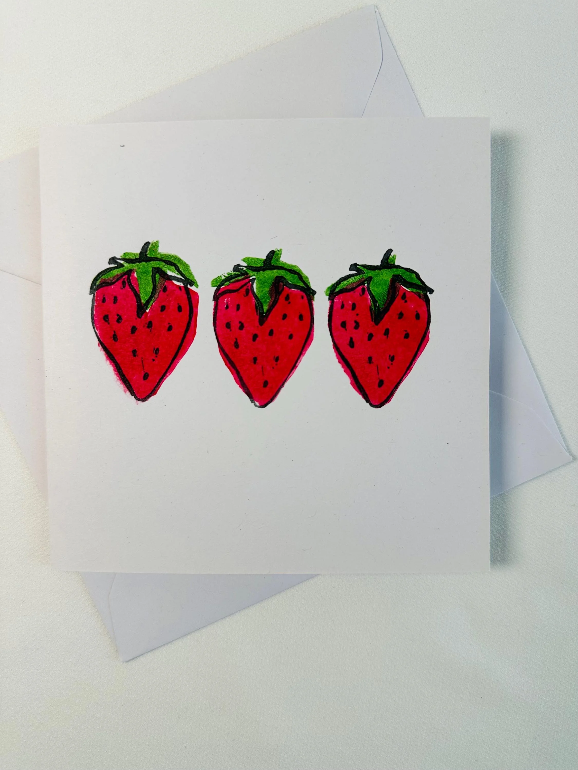Printed with 3 Strawberries ,using eco ink. Cards are made from recycled paper.