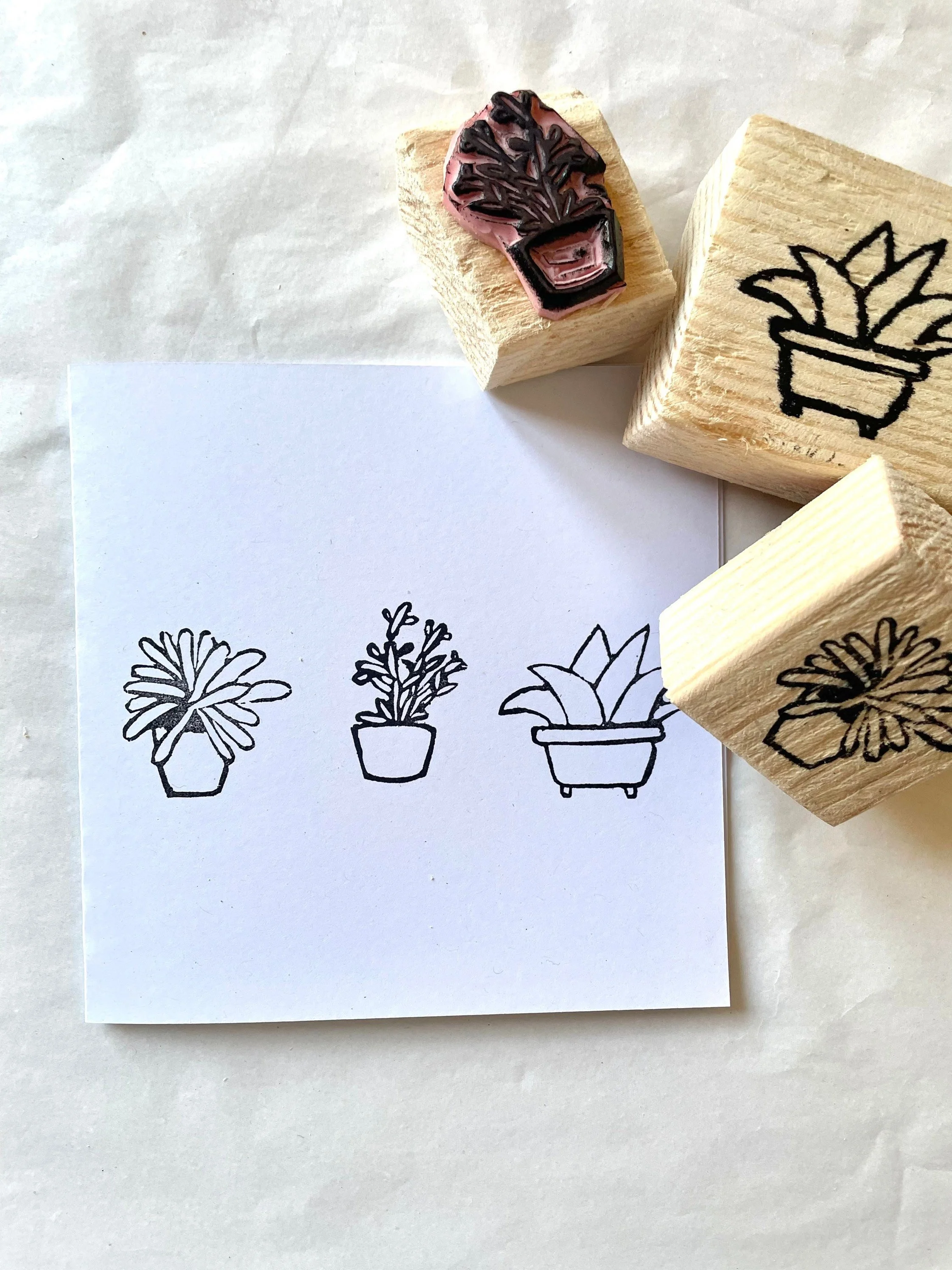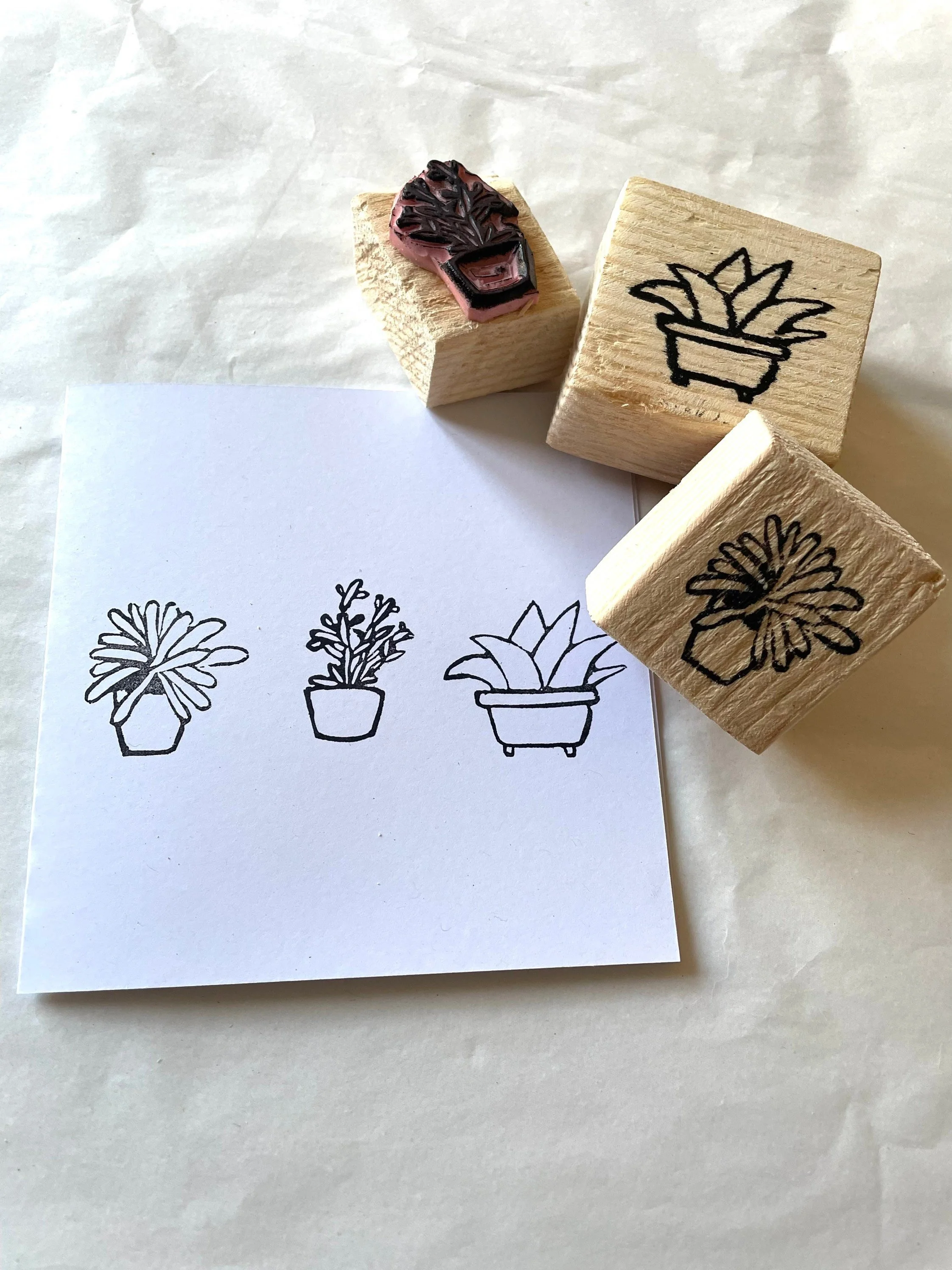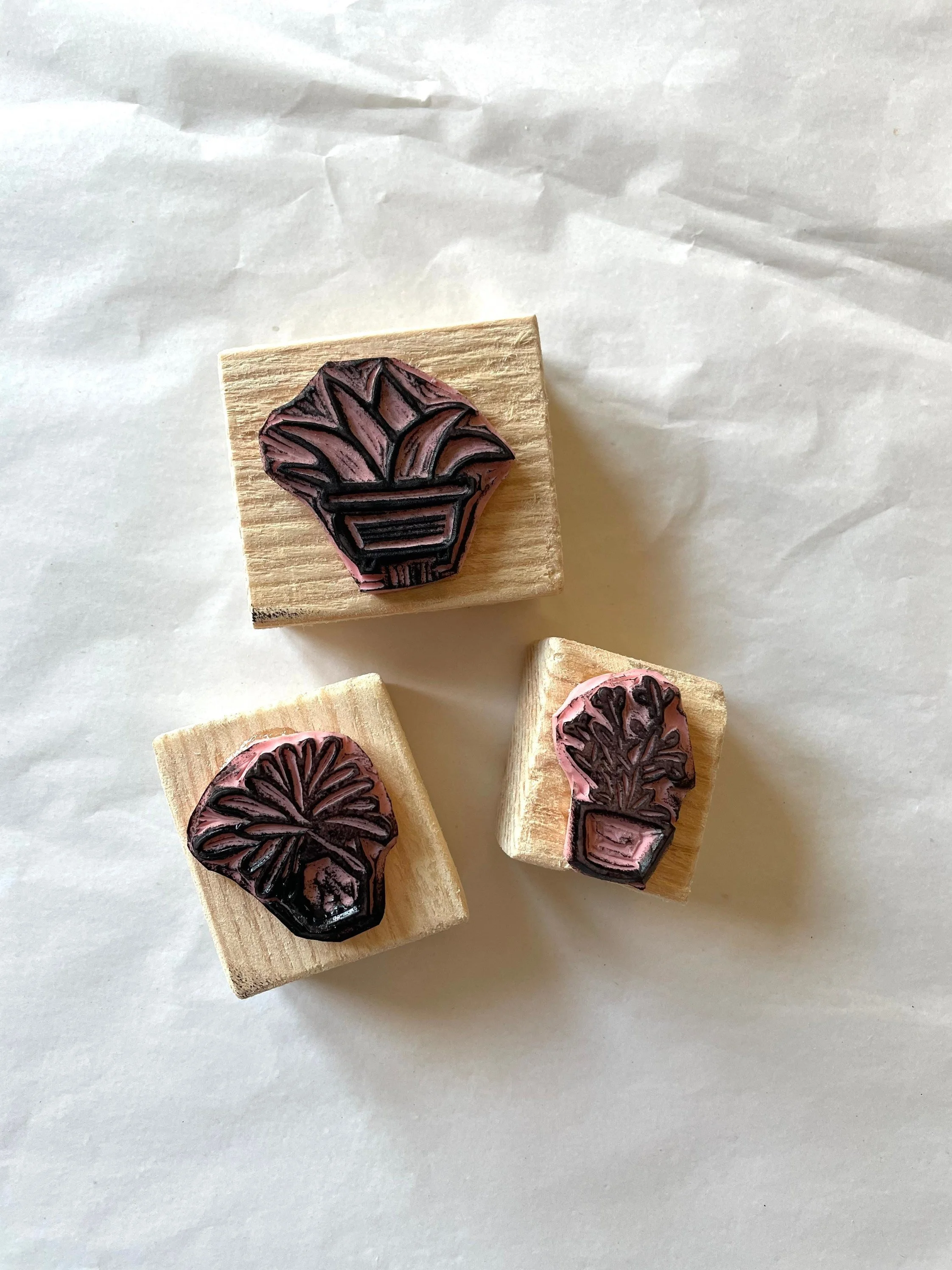 These cute little succulents come measuring about 1.5 inch. Perfect for ink and paint. Hand carved using traditional carving methods and tools.