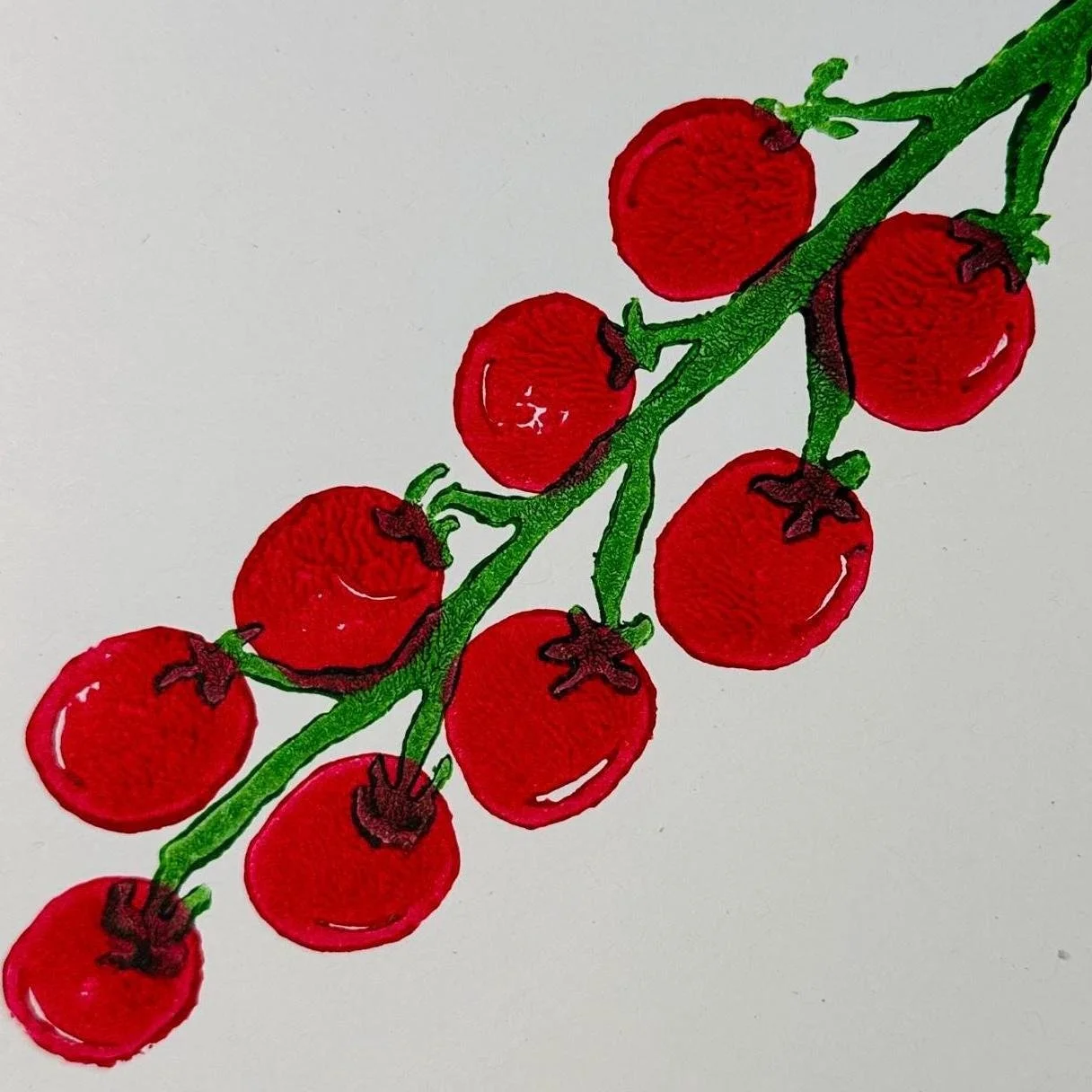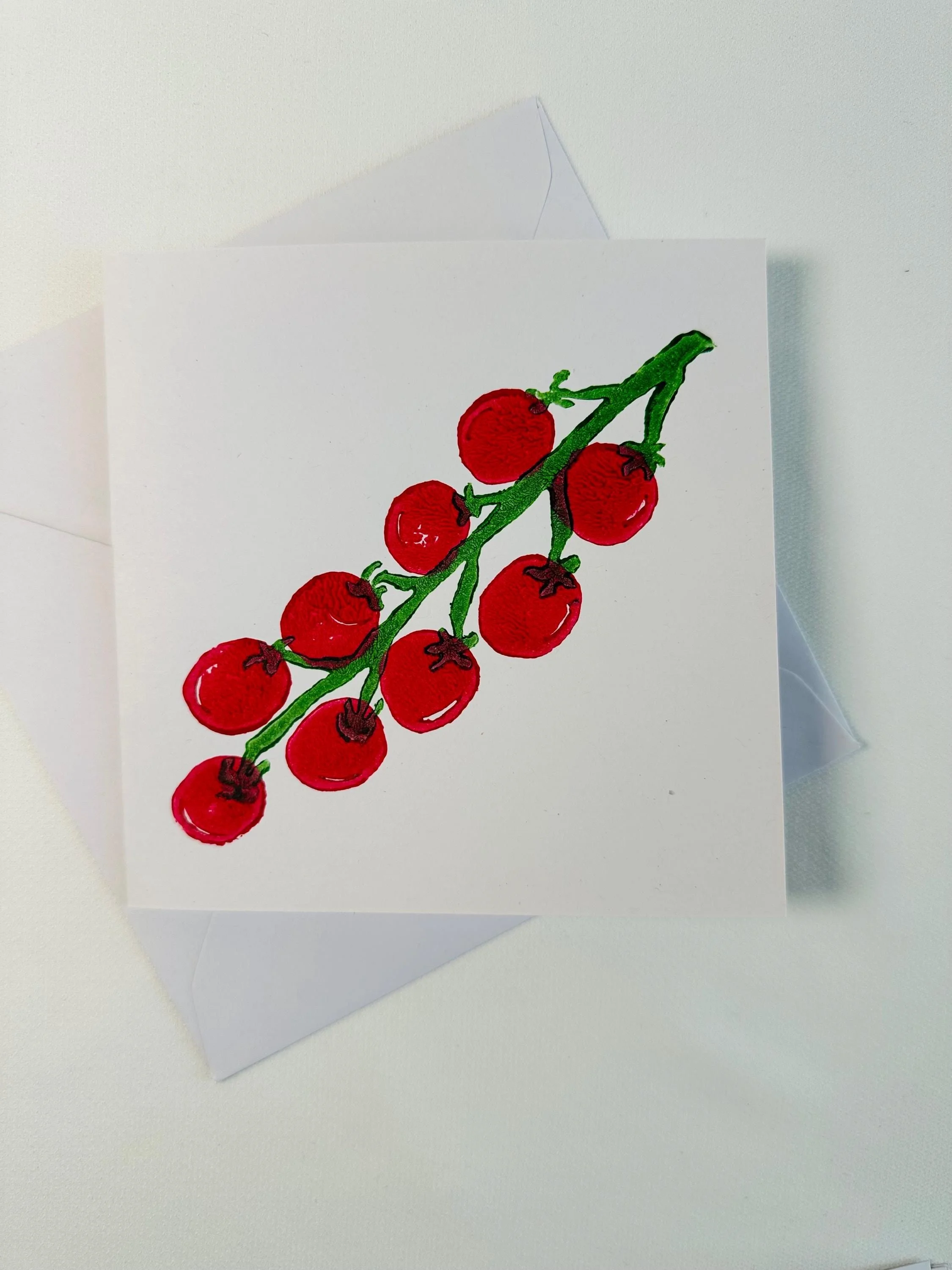 Printed with a tomato bunch ,using eco ink. Cards are made from recycled paper.