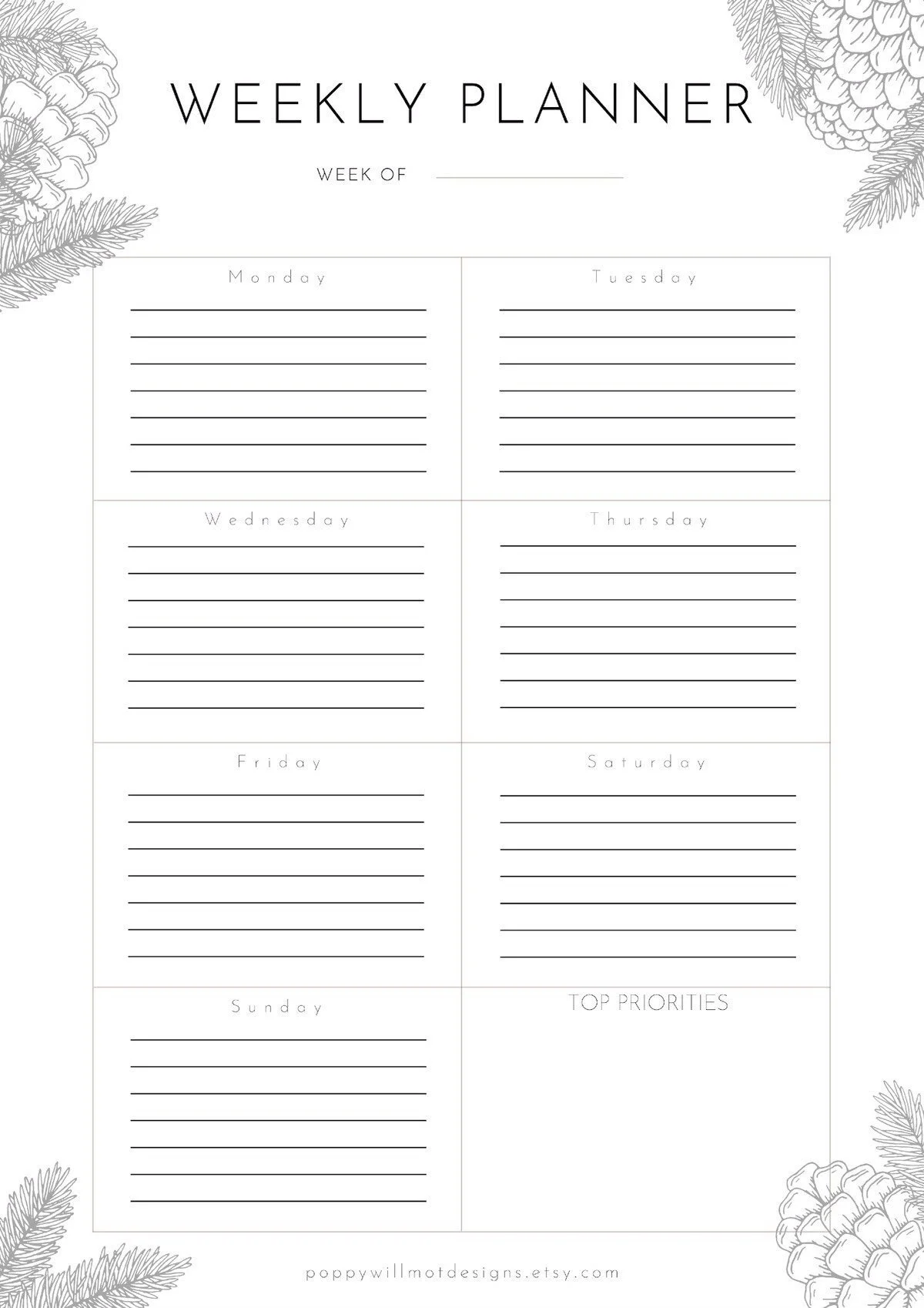 Weekly planner | Minimalist Printable PDF Template | Organisation and Planning | A4